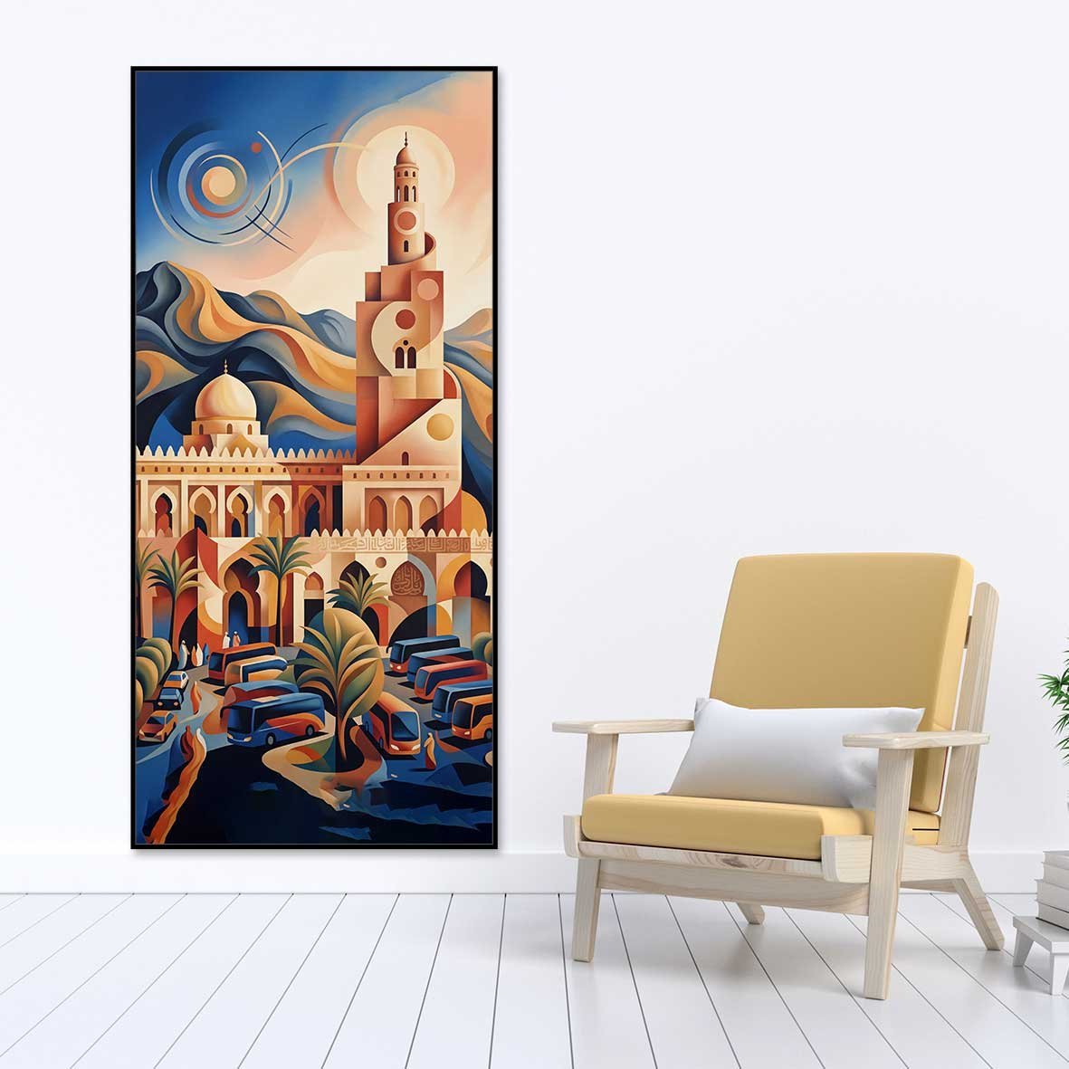 لوحة جدارية بتصميم مميز ، مطبوعة على أفخر أنواع قماش الكانفاس اللامع ، مثبت على إطار خشبي مخفي ، متوفرة للعميل بإطار فاخر ملون ، وبدون إطار خارجي فقط قماش مشدود على خشب سويدي معالج